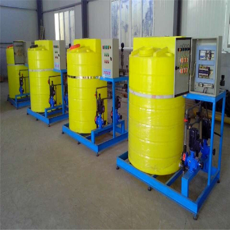 加藥裝置根據(jù)所需藥劑濃度,在攪拌箱內(nèi)配置,經(jīng)攪拌器攪拌均勻后投入溶液箱、用計(jì)量泵向投藥點(diǎn)或指定系統(tǒng)中輸送所配制的溶液。成套加藥裝置具有結(jié)構(gòu)緊湊、安全簡單、操作使用簡便等特點(diǎn)。加藥裝置還可根據(jù)用戶不同工藝流程的要求,進(jìn)行有針對(duì)性的設(shè)計(jì)、配置必要的部件,實(shí)現(xiàn)自動(dòng)遠(yuǎn)程控制等功能。